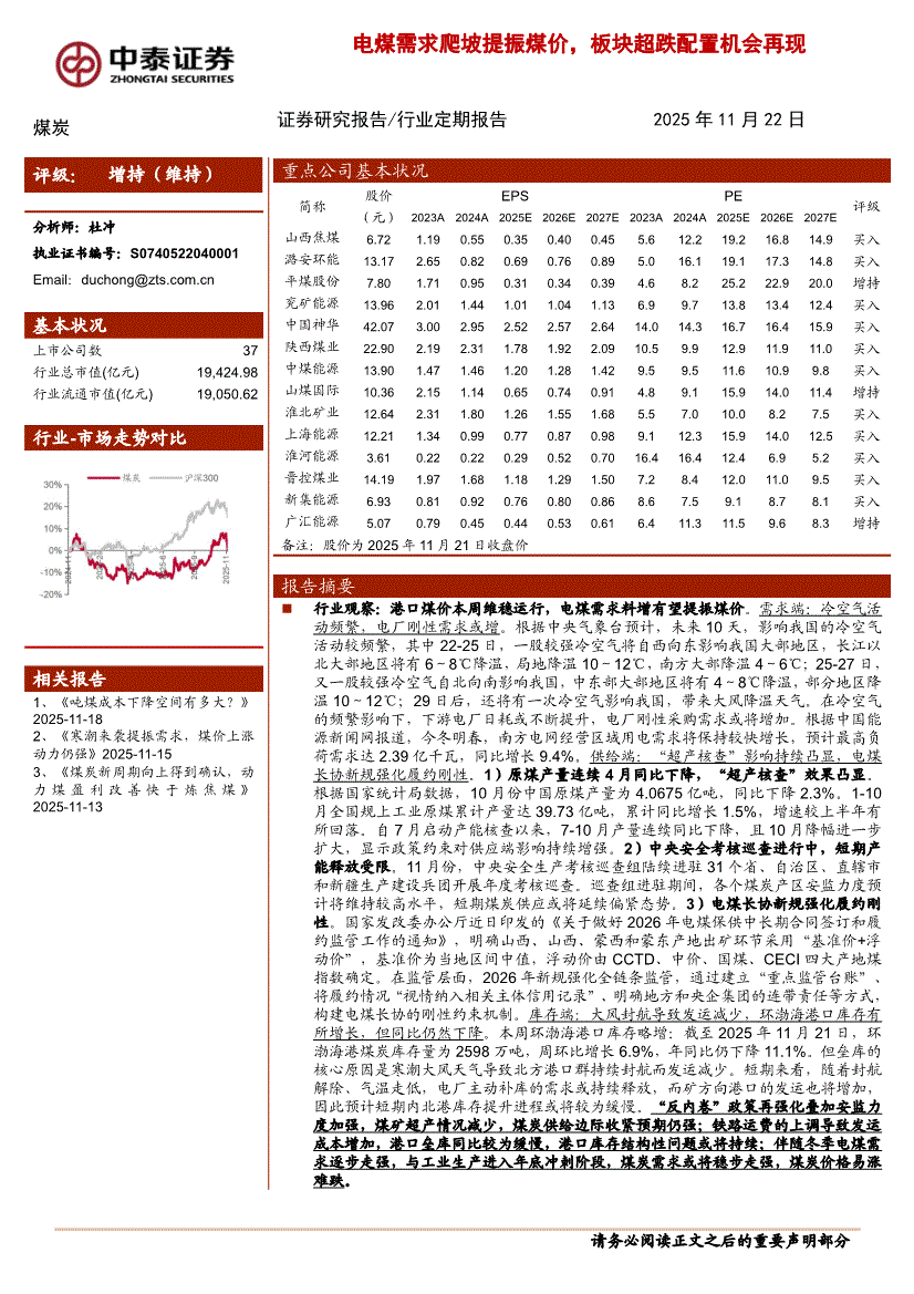 煤炭行业:中泰证券-煤炭行业:电煤需求爬坡提振煤价,板块超跌配置机会再现-251122