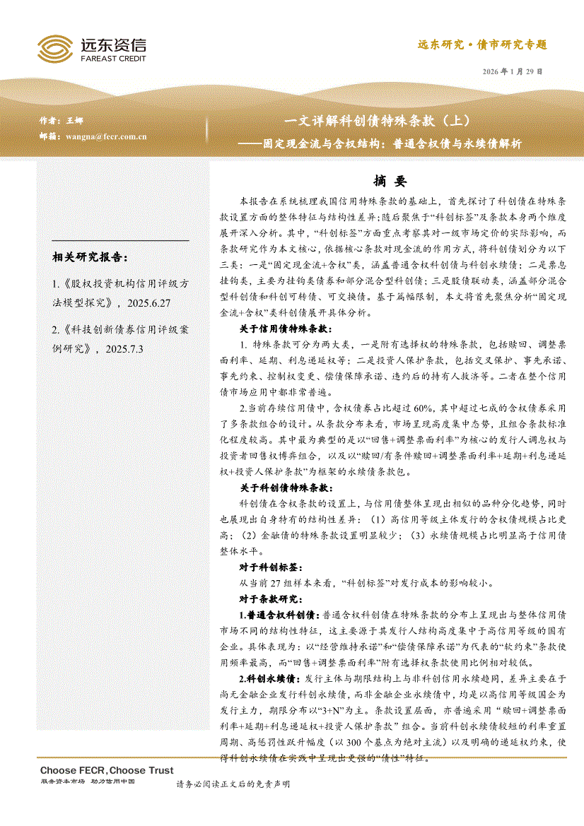 远东资信-一文详解科创债特殊条款(上)——固定现金流与含权结构:普通含权债与永续债解析-260129