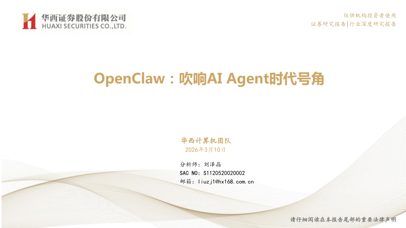 计算机行业:华西证券-计算机行业OpenClaw:吹响AI Agent时代号角-260310