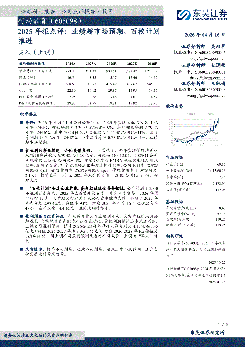 行动教育:东吴证券-行动教育-605098-2025年报点评:业绩超市场预期,百校计划推进-260416