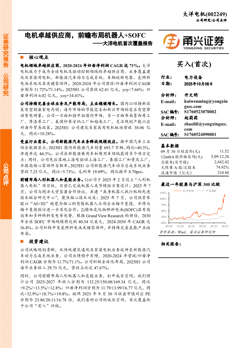 甬兴证券-大洋电机-002249-首次覆盖报告:电机卓越供应商,前瞻布局机器人+SOFC-251008