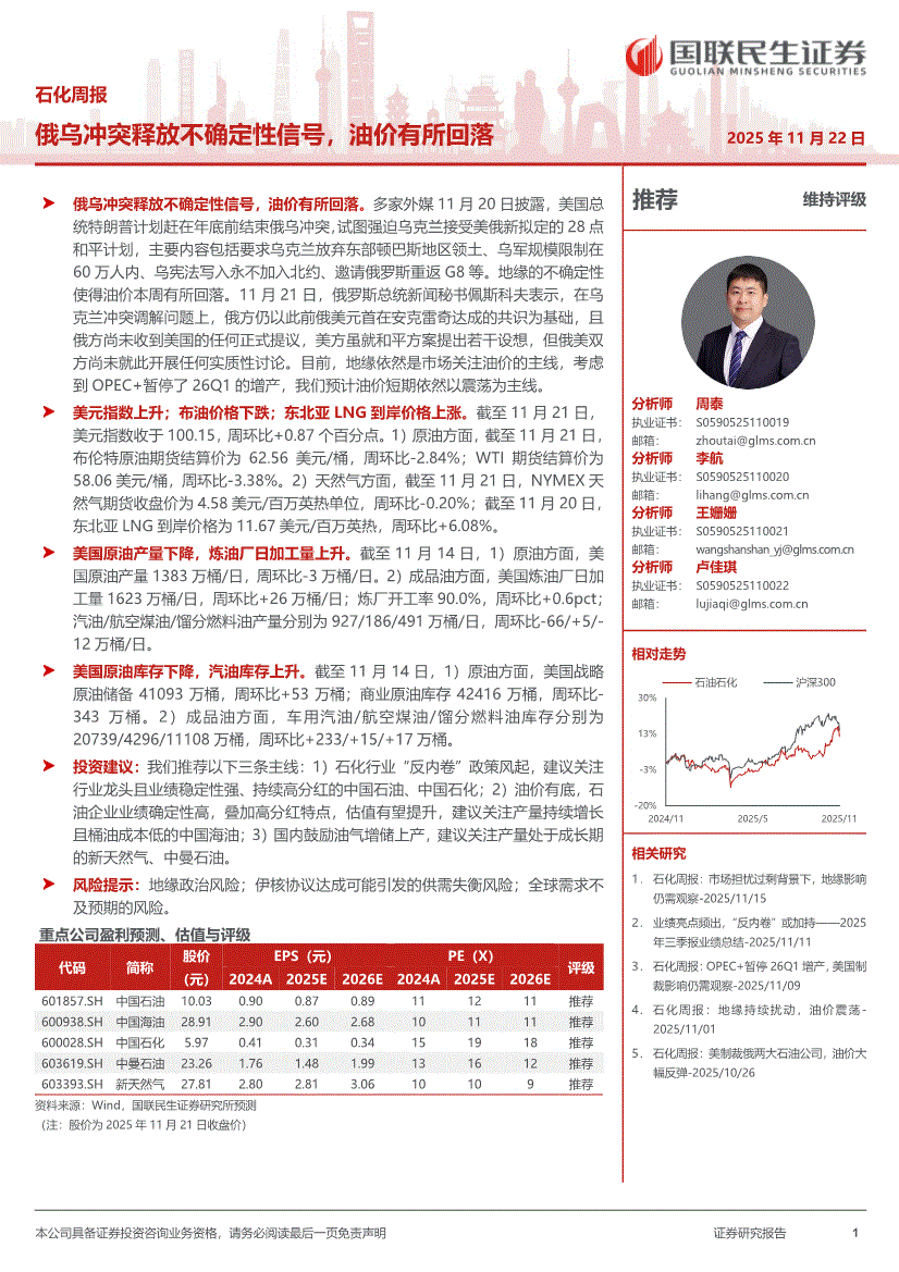 石化行业:民生证券-石化行业周报:俄乌冲突释放不确定性信号,油价有所回落-251122