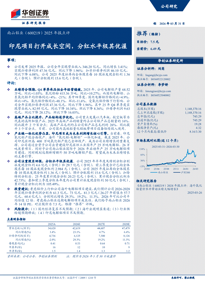 南山铝业:华创证券-南山铝业-600219-2025年报点评:印尼项目打开成长空间,分红水平极其优渥-260331