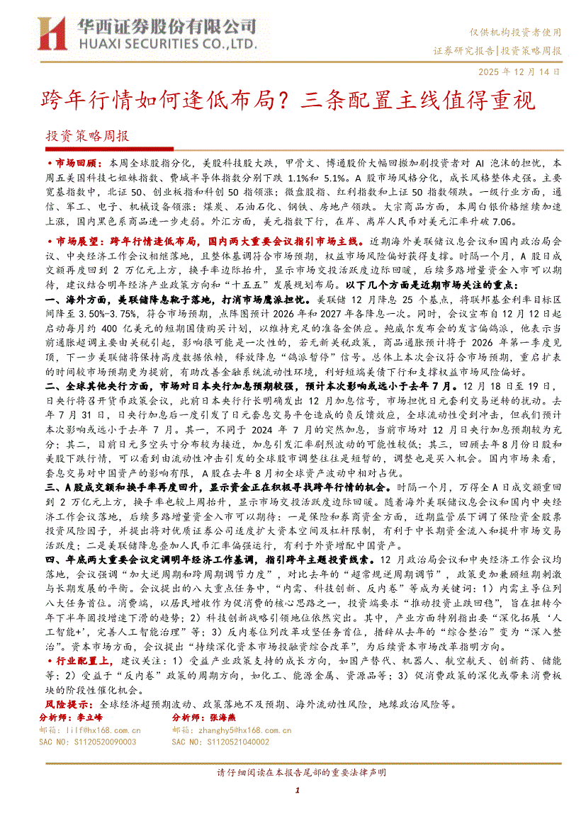 华西证券-投资策略周报:跨年行情如何逢低布局?三条配置主线值得重视-251214