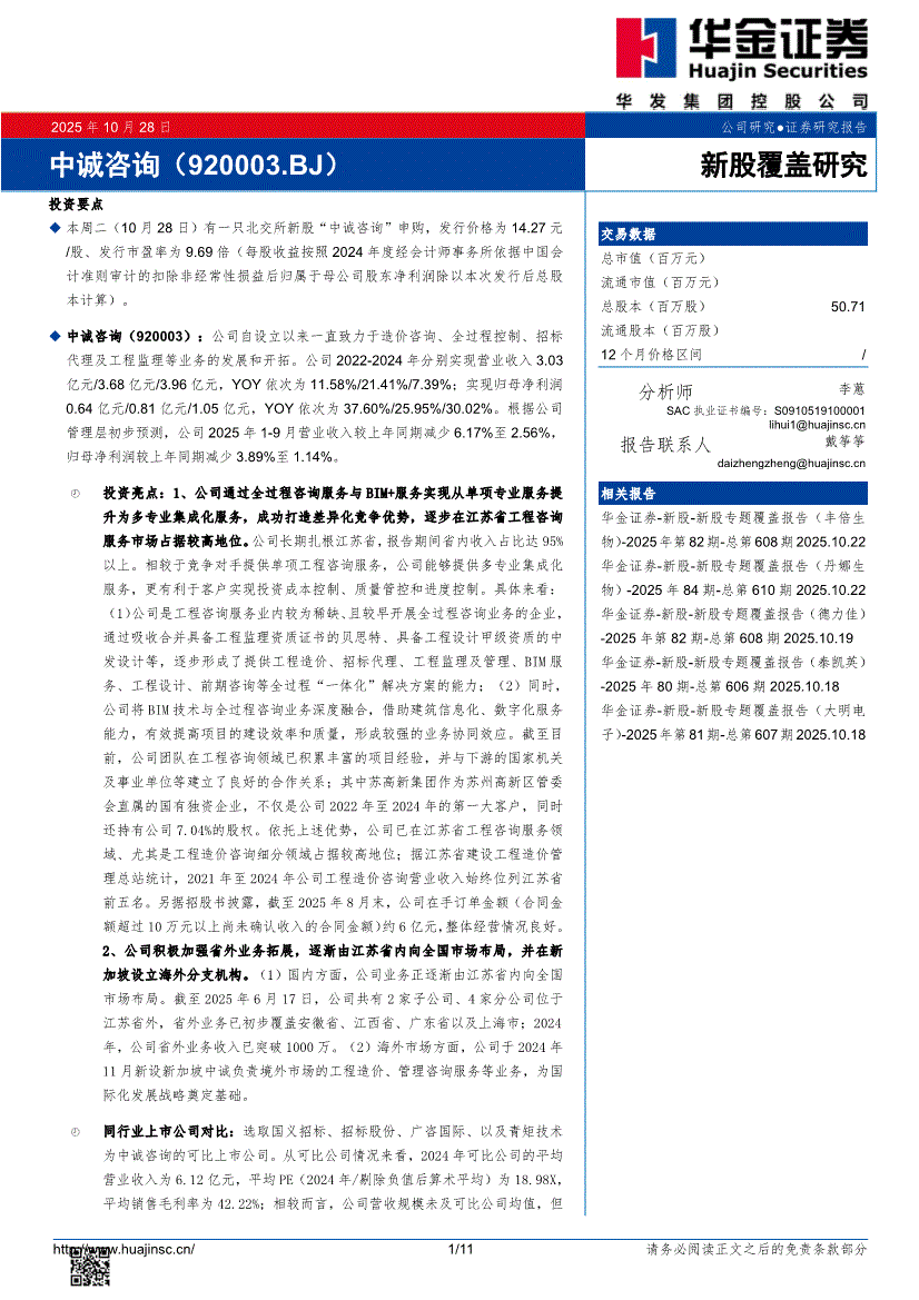 中诚咨询:华金证券-中诚咨询-920003-新股覆盖研究-251028