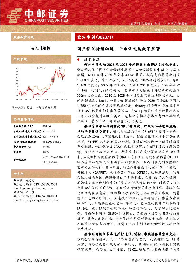 北方华创:中邮证券-北方华创-002371-国产替代持续加速,平台化发展效果显著-251211