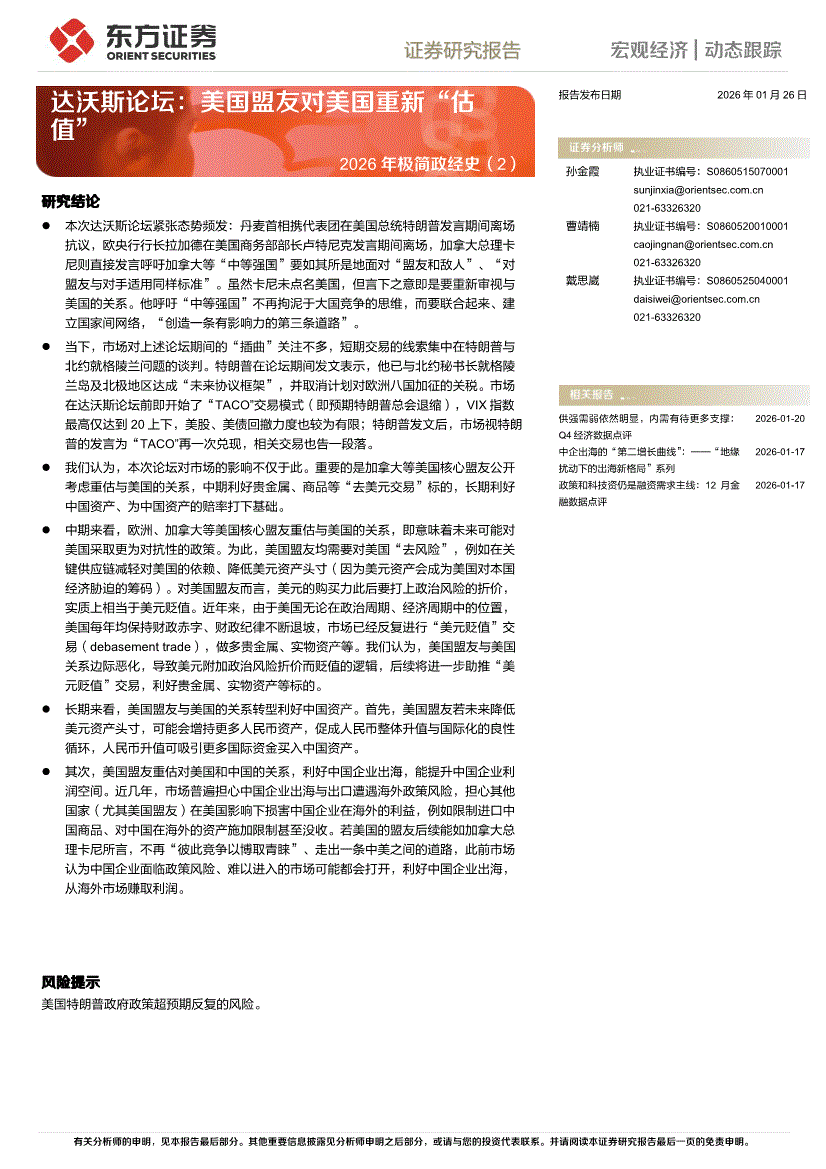 东方证券-2026年极简政经史(2):达沃斯论坛,美国盟友对美国重新“估值”-260126