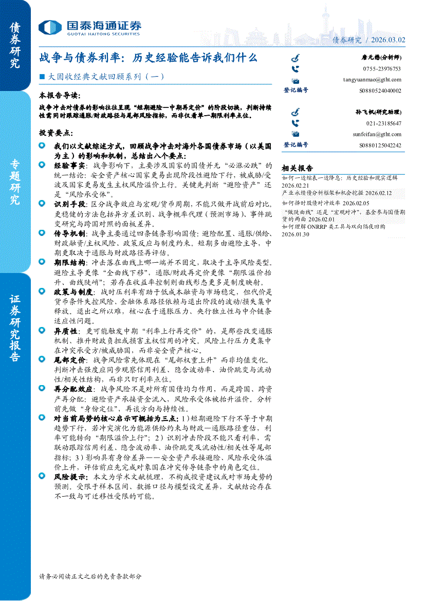 国泰海通证券-大固收经典文献回顾系列(一):战争与债券利率,历史经验能告诉我们什么-260302