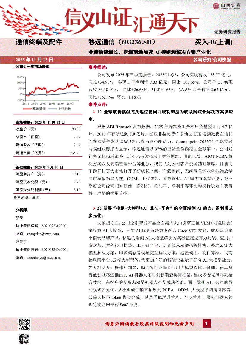 移远通信:山西证券-移远通信-603236-业绩稳健增长,定增落地加速AI模组和解决方案产业化-251113
