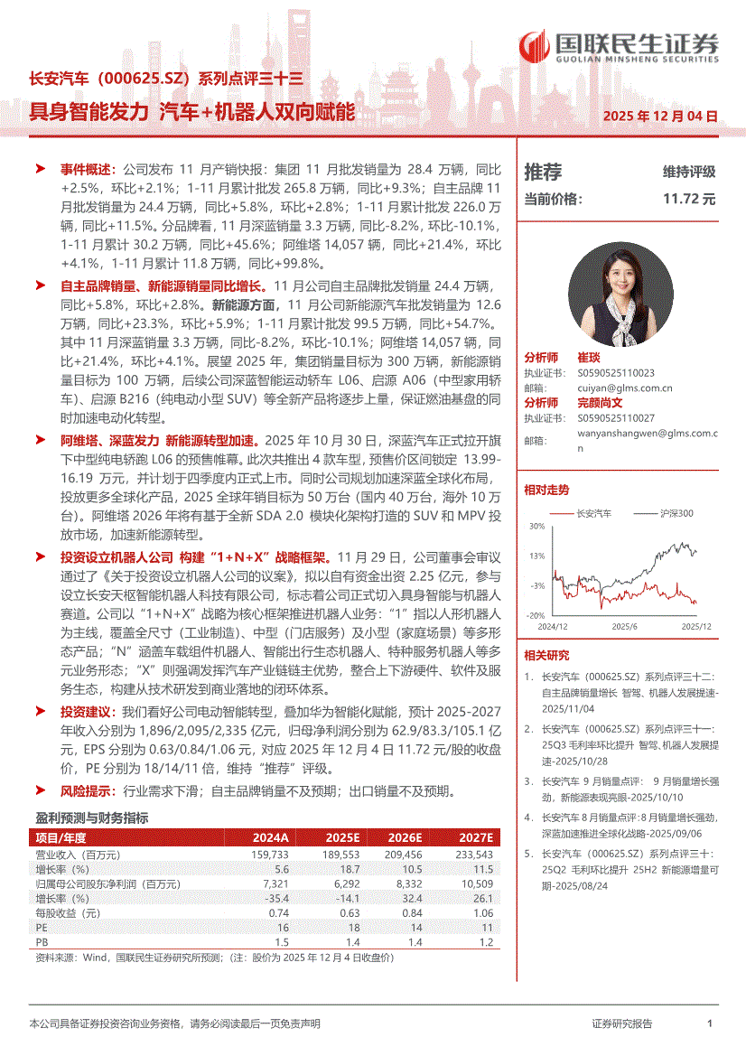 长安汽车:国联民生证券-长安汽车-000625-系列点评三十三:具身智能发力,汽车+机器人双向赋能-251204