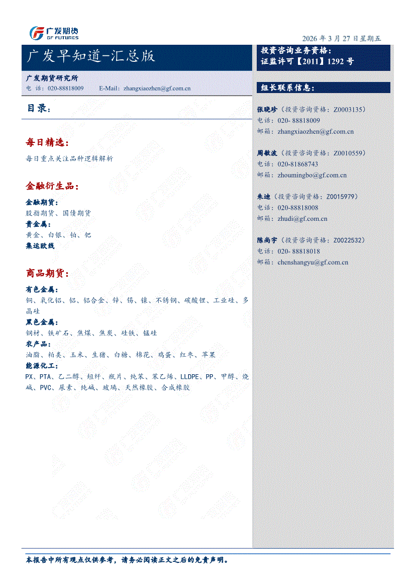 广发期货-广发早知道~汇总版-260327