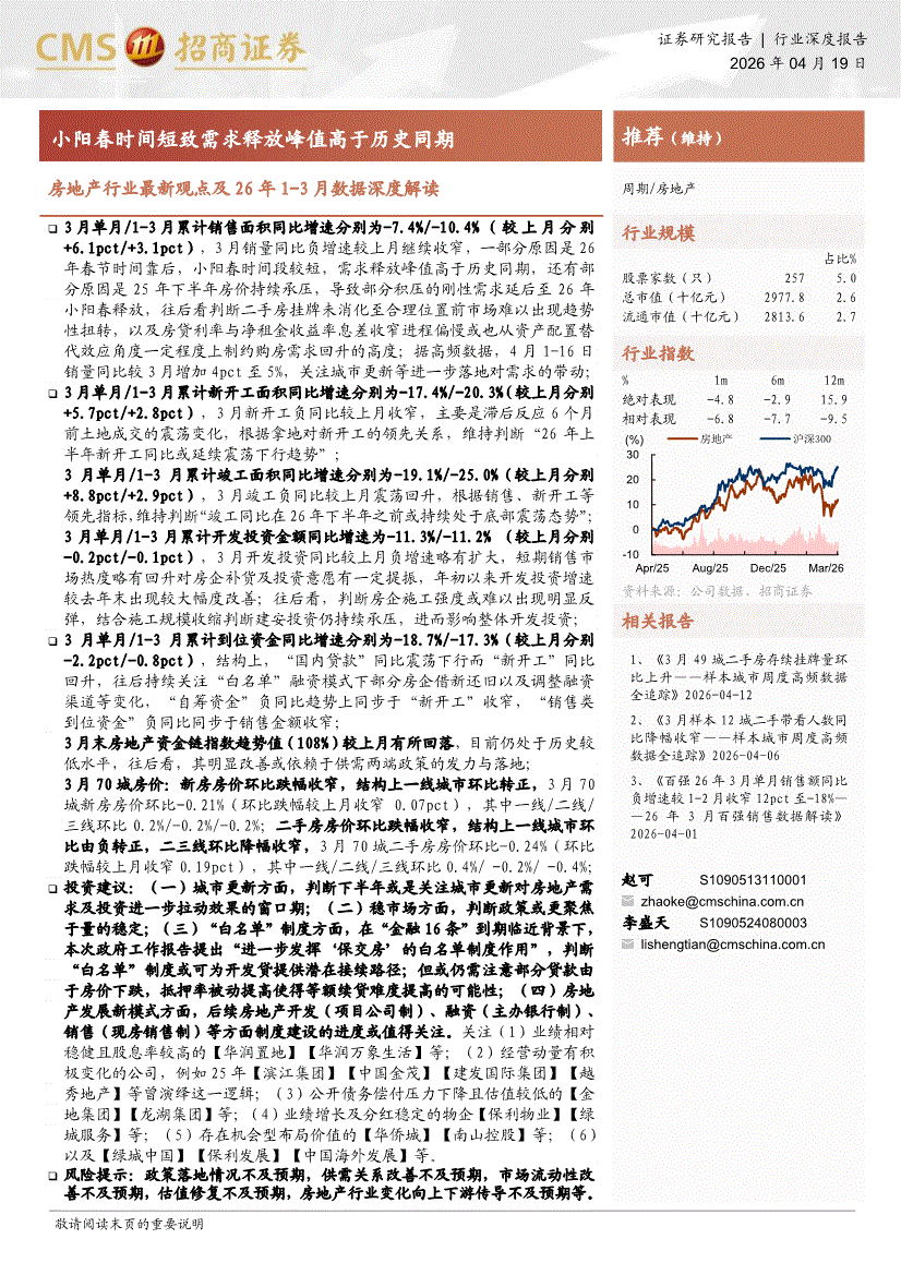 房地产行业:招商证券-房地产行业最新观点及26年1~3月数据深度解读:小阳春时间短致需求释放峰值高于历史同期-260419