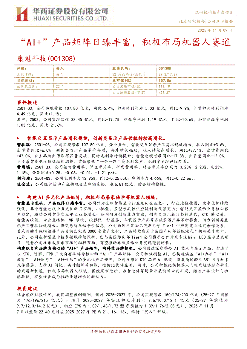 康冠科技:华西证券-康冠科技-001308-“AI+”产品矩阵日臻丰富,积极布局机器人赛道-251109