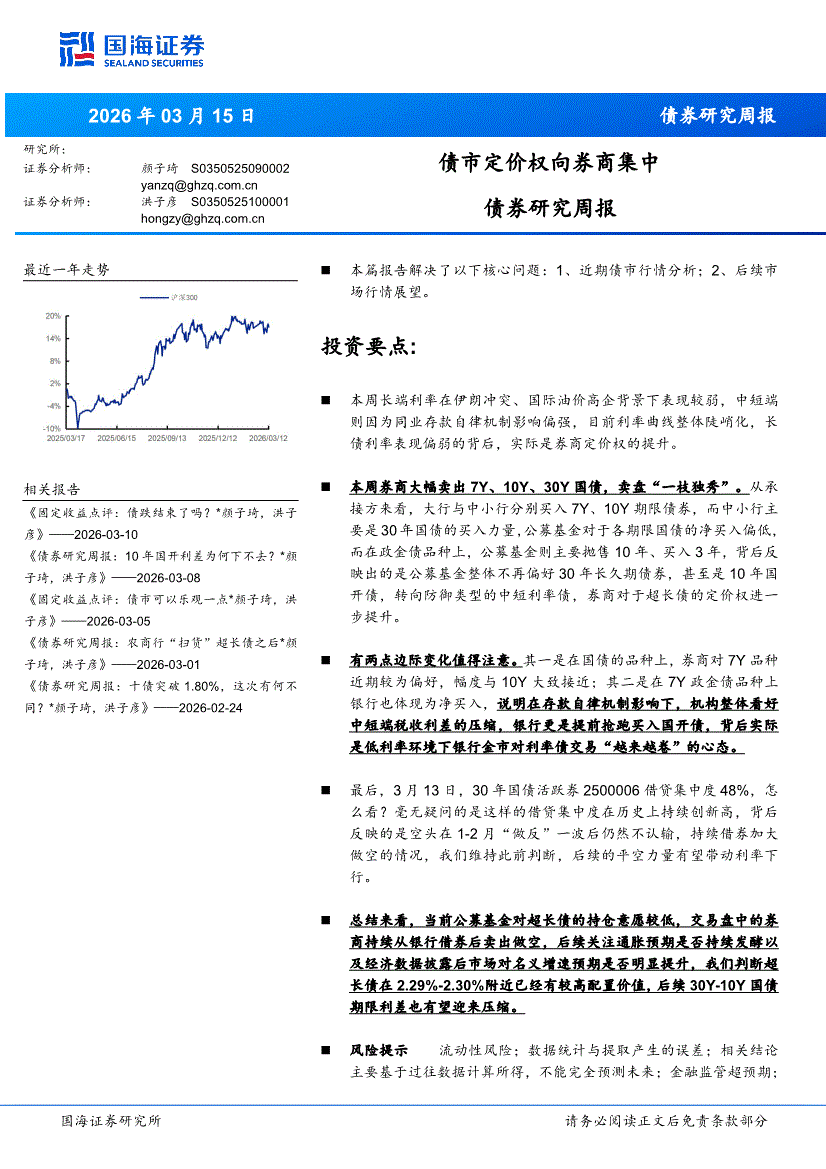 国海证券-债券研究周报:债市定价权向券商集中-260315