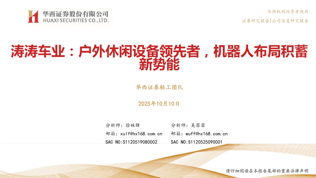 涛涛车业:华西证券-涛涛车业-301345-户外休闲设备领先者,机器人布局积蓄新势能-251010