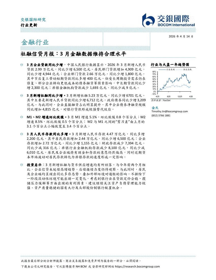金融行业:交银国际-金融行业社融信贷月报:3月金融数据维持合理水平-260414