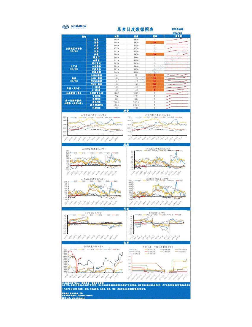 冠通期货-尿素日度数据图表-260402